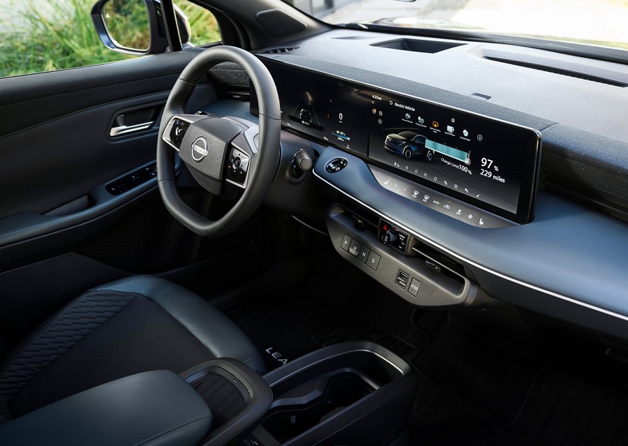 Leaf Platinum+ ($40,485) – The fully loaded version with 19-inch wheels, a panoramic glass roof, Bose premium sound, ambient lighting, 3D-effect taillights, and a powered liftgate. Range drops to 259 miles, but it brings the kind of flair and comfort Leaf owners never had before.