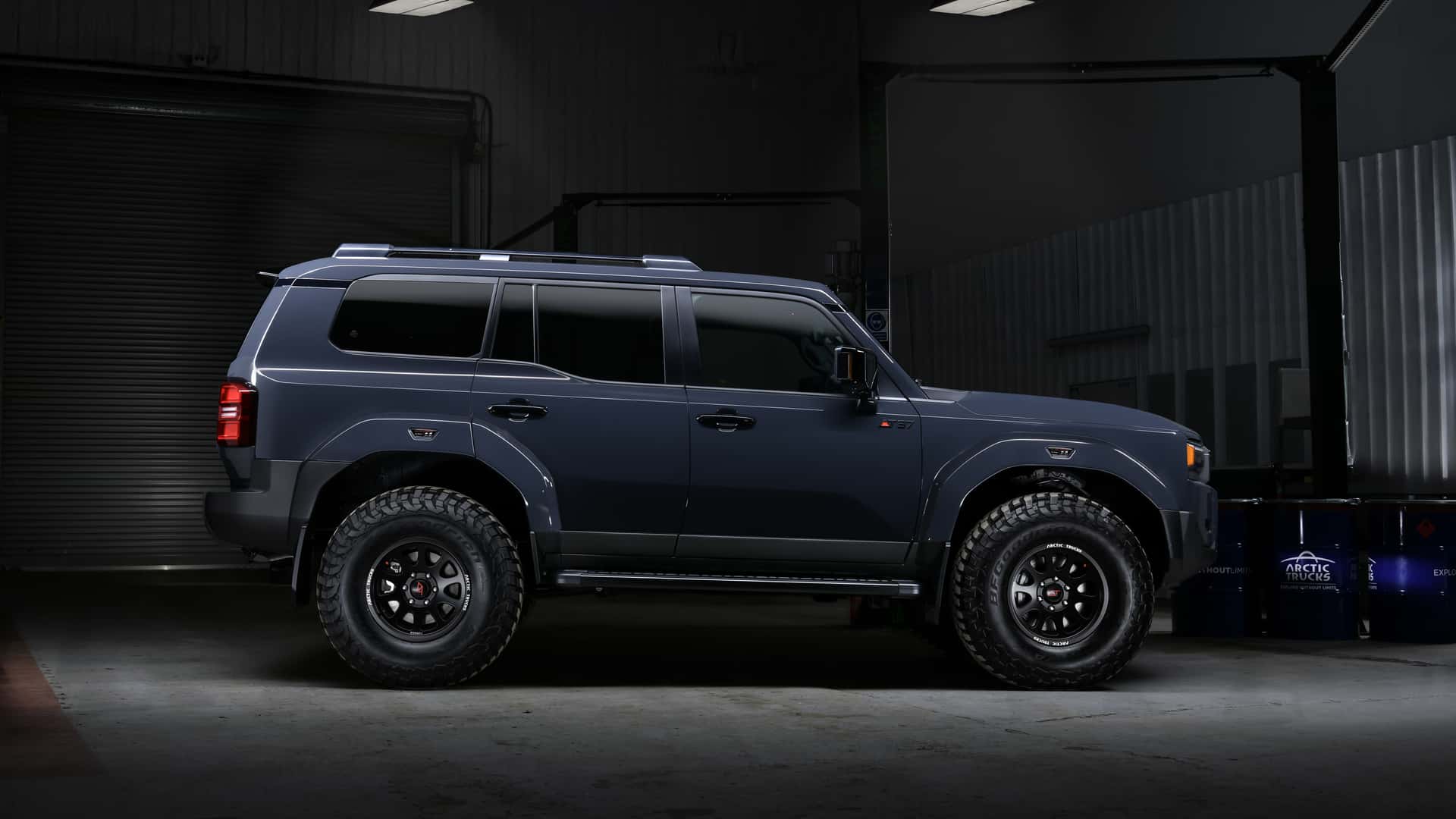 The SUV is equipped with 17-inch Arctic Trucks wheels paired with 37-inch BFGoodrich T/A K03 tires, giving it its distinctive AT37 name. To accommodate these massive tires without any clearance issues, a widebody kit comprising 10 pieces has been integrated into the design.
