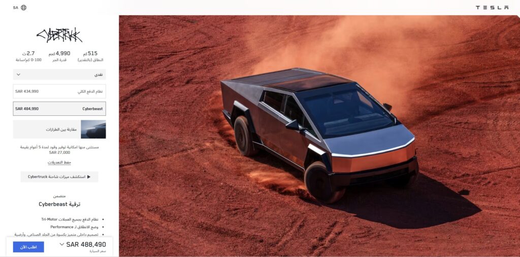 “Cybertruck is now available in the Middle East. Get your vehicle ready and place your order in the UAE, Qatar, and Saudi Arabia.”